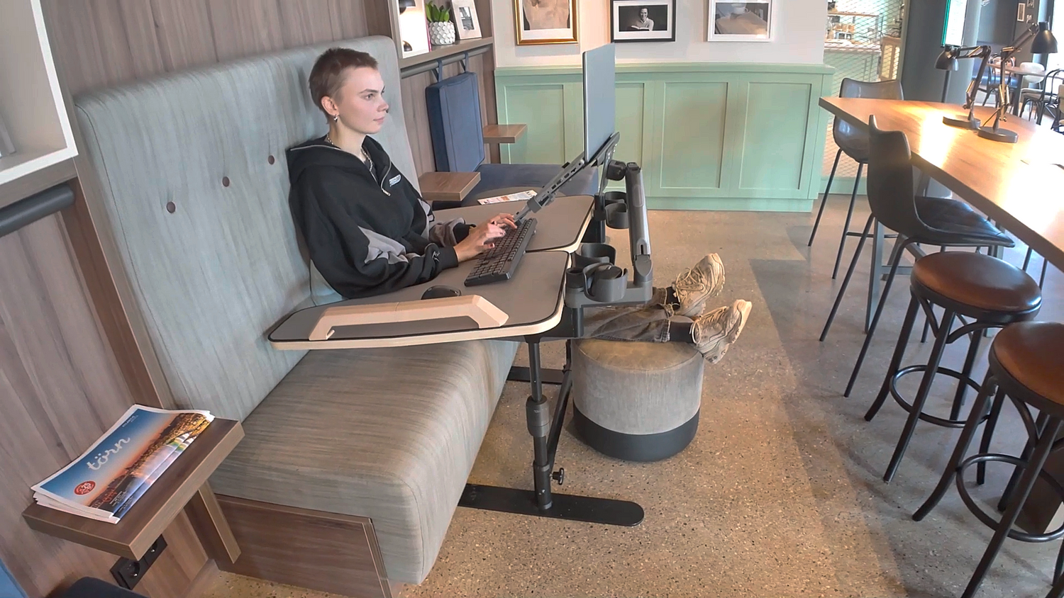 Hotel lobby, coffee shop, airport lounge — now you and your laptop finally have a comfortable place to work.